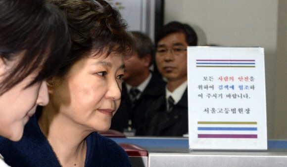 30일 오후 영장실질심사(구속 전 피의자심문)를 마친 박근혜 전 대통령이 서울 서초구 서울중앙지법을 나서 대기장소인 서울중앙지검으로 향하고 있다.