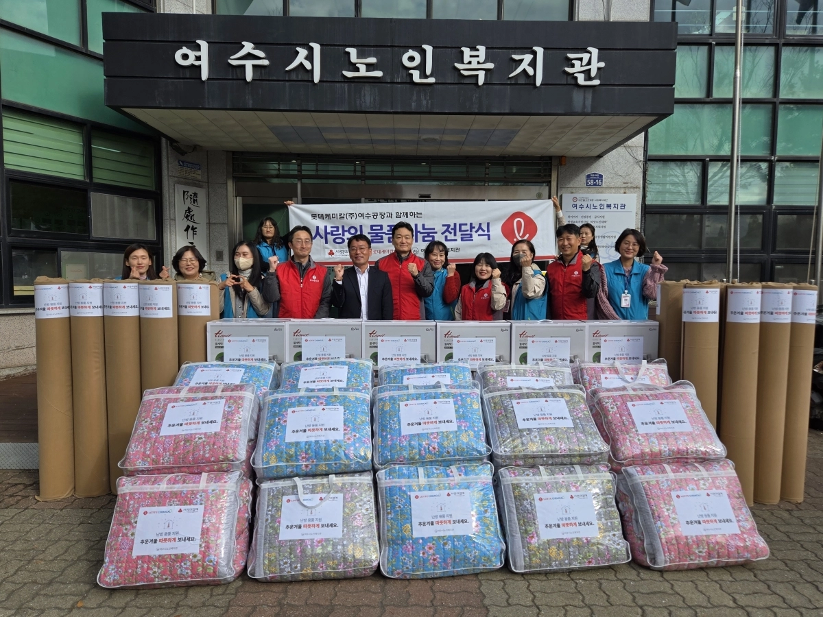 롯데케미칼㈜ 여수공장 임직원들은 20일 지역 어르신들을 대상으로 전기장판 27개와 차렵 이불세트 24채 등 난방용품을 지원하는 나눔 봉사 활동을 진행했다.